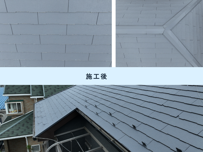 ※屋根材と屋根材の間に4mm以上の隙間がある場合は「縁切り」や「タスペーサー」は不要です。ビフォーアフター