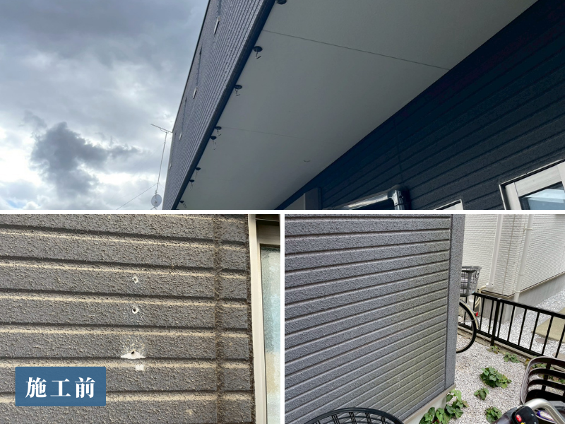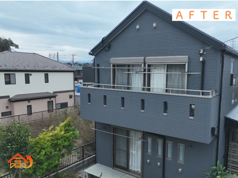 苔や防カビ成分を有しているので雨だれや汚染から建物を守ってくれるのが最大の特徴です。デメリットとしては、最近主流のシリコン塗料に比べ耐用年数が数年低いところです。しかしコスパが良いこともあり10年程度でメンテナンスを考えている方にはお勧めです♪ビフォーアフター
