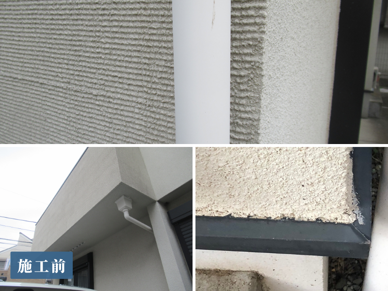 実際にお時間をいただいて建物の調査をしました。塗膜の劣化やコーキングの劣化、塗装をする前にしっかり下地補修を行うことが大切になってきます。現地調査の他に足場の組み立て後にも同じように調査をします。
